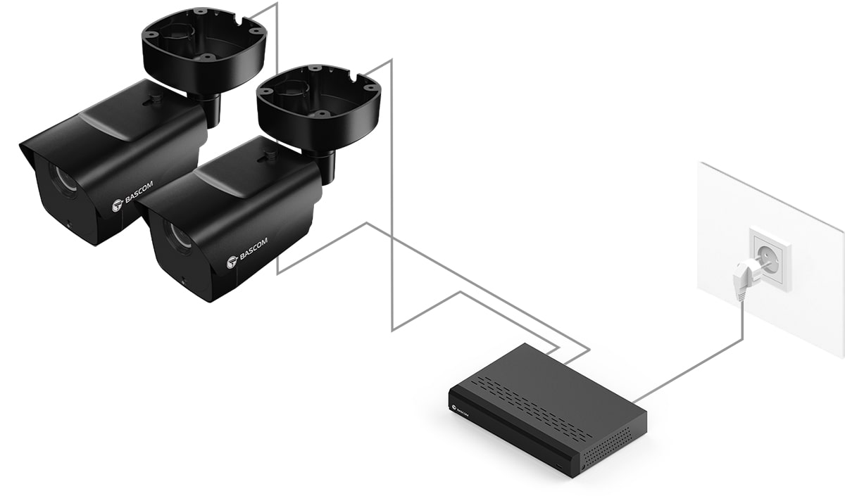 95 % unserer Kunden haben noch nie ein Kamerasystem angeschlossen und installieren dieses Bascom-System doch völlig problemlos selbst. Schrauben Sie die Kameras an die Wand oder die Decke, verbinden Sie die Kameras mit dem Rekorder und das System funktioniert.