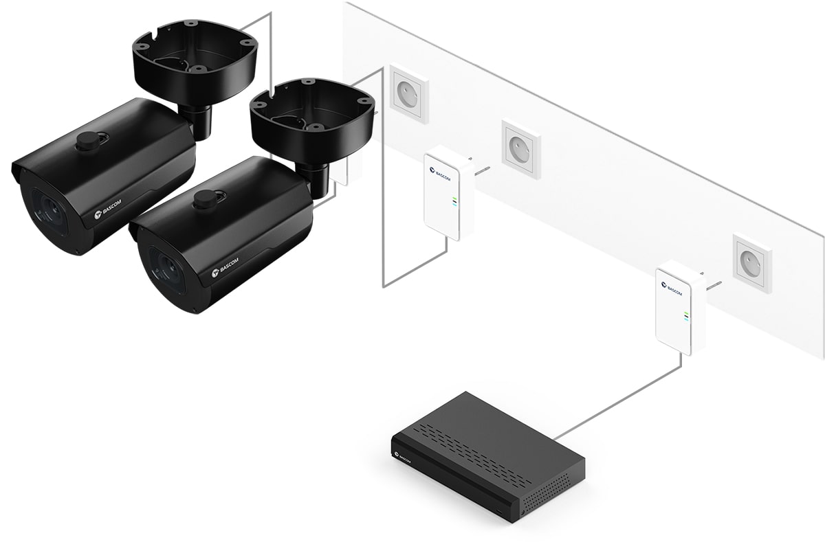 Dank der revolutionären Bascom®-POWER-Technologie sendet dieses Kamerasystem Bilder nicht mehr über WLAN, sondern über Ihre Stromleitung. Sie schließen die Kameras an die Steckdose an, die Kameras verbinden sich dann automatisch mit dem Rekorder. Das Ergebnis: eine hohe Bildqualität und die Zuverlässigkeit eines kabelgebundenen Kamerasystems, ganz ohne Kabel.