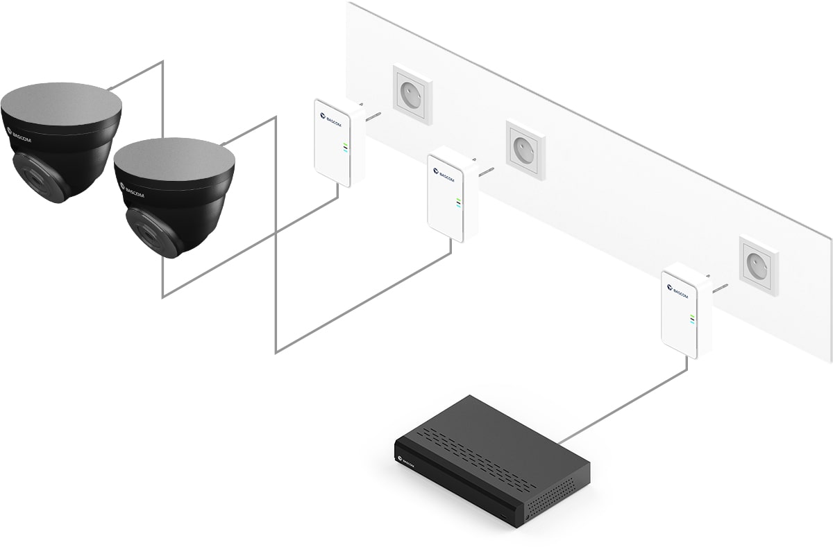 Dank der revolutionären Bascom®-POWER-Technologie sendet dieses Kamerasystem Bilder nicht mehr über WLAN, sondern über Ihre Stromleitung. Sie schließen die Kameras an die Steckdose an, die Kameras verbinden sich dann automatisch mit dem Rekorder. Das Ergebnis: eine hohe Bildqualität und die Zuverlässigkeit eines kabelgebundenen Kamerasystems, ganz ohne Kabel.