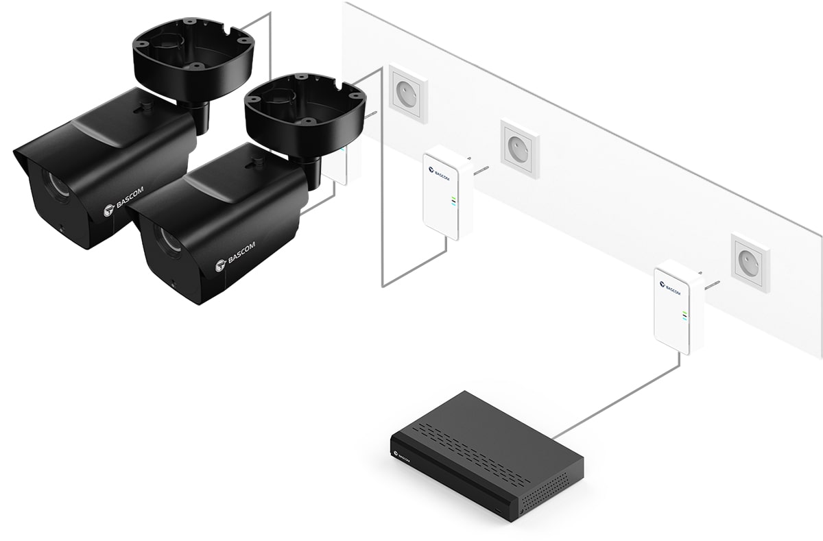 Dank der revolutionären Bascom®-POWER-Technologie sendet dieses Kamerasystem Bilder nicht mehr über WLAN, sondern über Ihre Stromleitung. Sie schließen die Kameras an die Steckdose an, die Kameras verbinden sich dann automatisch mit dem Rekorder. Das Ergebnis: eine hohe Bildqualität und die Zuverlässigkeit eines kabelgebundenen Kamerasystems, ganz ohne Kabel.
